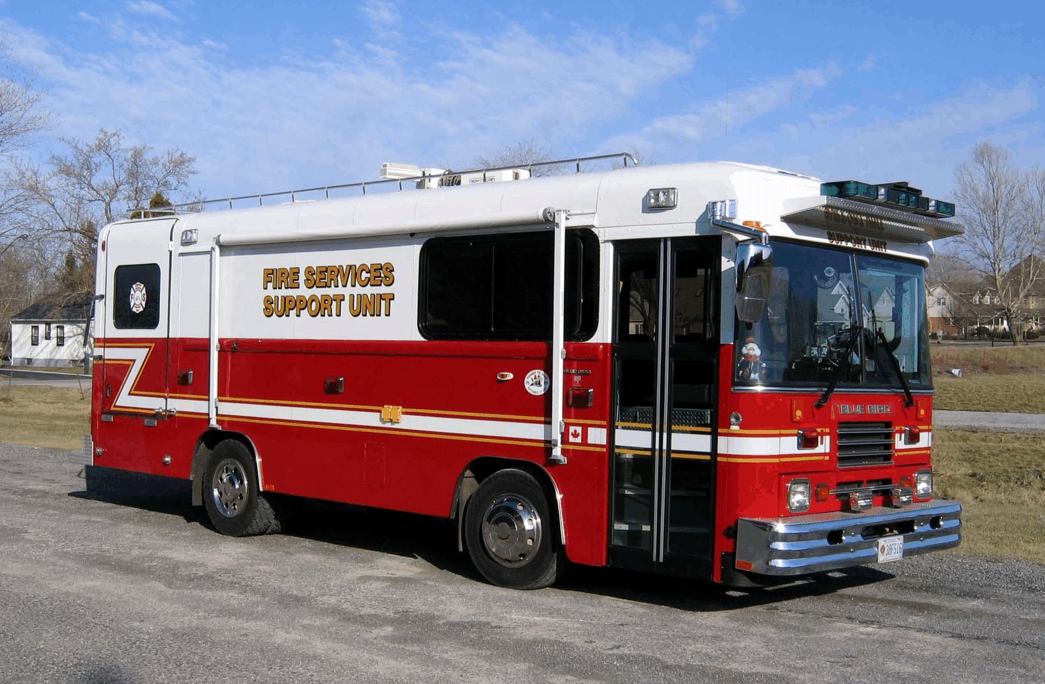 In early 1994 the RNFBA was incorporated as a non-profit organization allowing it to raise monies as a charity for the Support Unit and to issue tax receipts for donations. The Units’ next vehicle, a 1975 GMC step van, the former Pelham Rescue 1, went to its first call on September 20, 1994 and answered 380 calls for assistance before being replaced by a former Tillsonburg transit bus in 2004. The 1998 Bluebird was converted by PK Van Bodies of Oshawa and was equipped with a Cummins diesel; Allison auto trans; 25 KW Onan PTO driven generator; 3000 watt Wilburt nightscan light tower; Whelen lighting package; backup camera; side awning; rear serving window; seating for 7; full size fridge, stove & microwave; stainless steel counters; hot & cold water with 50 gal. tank and Bunn coffee maker. The rig responded to its first call on October 5, 2004. At emergency scenes the SU was equipped to serve coffee, hot chocolate, pop, bottled water, granola bars, cookies and when requested could put on a full meal, such as hot dogs, soup, their famous chili, sandwiches or pizzas.
